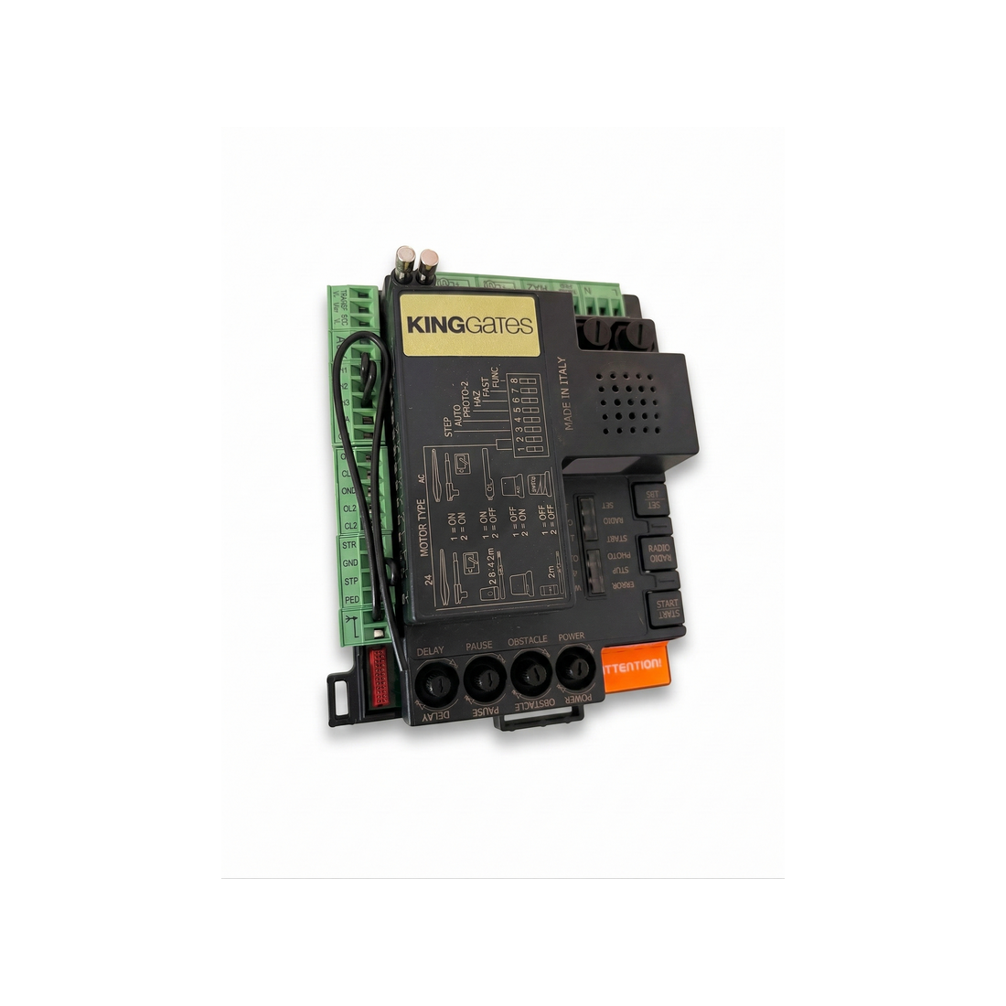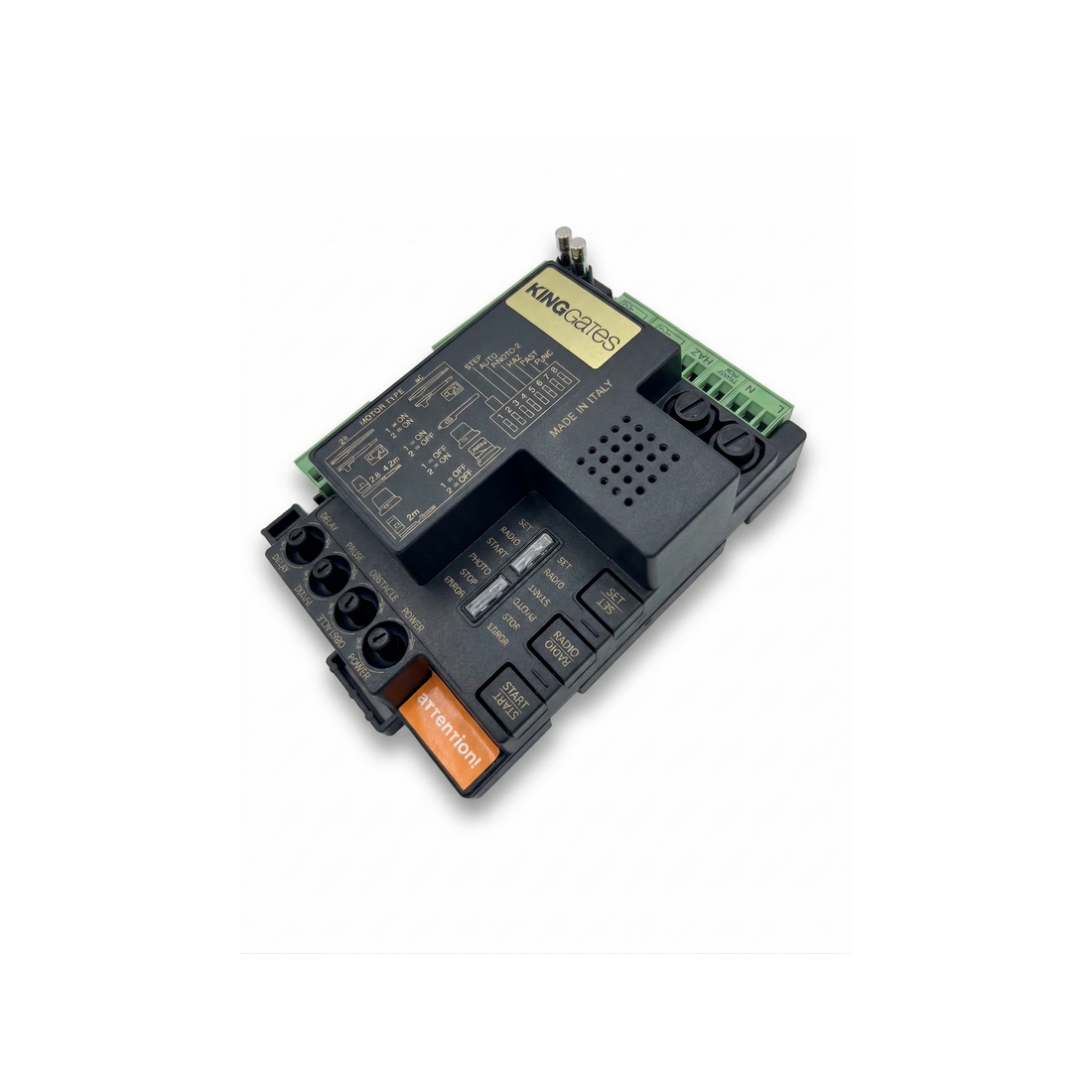La carte STARG8 24 XL King Gates est une centrale de commande 24V hautes performances, spécialement conçue pour le moteur Dynamos XL1800. Elle assure une gestion précise de l’automatisation des portails coulissants lourds, avec démarrage progressif, sécurité anti-écrasement et récepteur radio intégré. Adaptée aux sites industriels, copropriétés sécurisées...