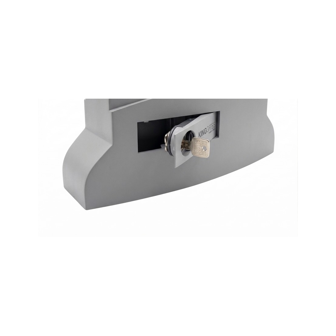 Lorsque votre portail automatique est équipé d’un moteur King Gates Dynamo, une clé est nécessaire pour accéder au mécanisme de déverrouillage situé derrière le cache noir en façade du moteur.