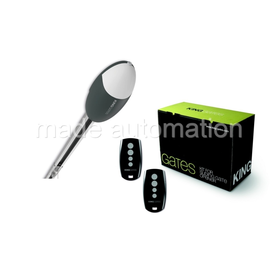 Elevo automatisme pour portes de garage de KING gates. Disponible avec rail pré-assemblé de 3 mètres ou en 3 pièces de 1 mètre.Grâce à la poussée de 620 N du moto-réducteur, ce dispositif est la solution idéale pour ouvrir et fermer des portes jusqu’à 10 m².Installation rapide Quelques minutes suffisent pour assembler cet automatisme : le rail est déjà complètement assemblé dans la version en une partie.Dans la version en 3 parties,les profils sont reliés grâce à 2 solides plaques en acier galvanisé.